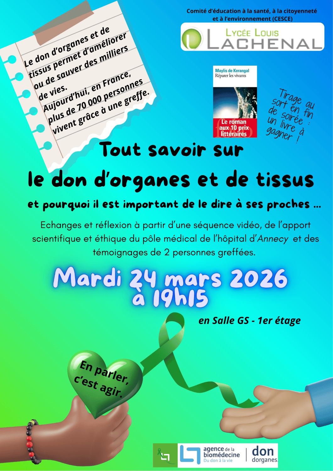 "Tout savoir sur le don d'organe" - 24/03/26 - 19h15 - GS Actualités 2025-2026 / 6 March 2026 / Soumis par jgal le 6 March 2026 Michel COLLOMB - pour le CESCE
