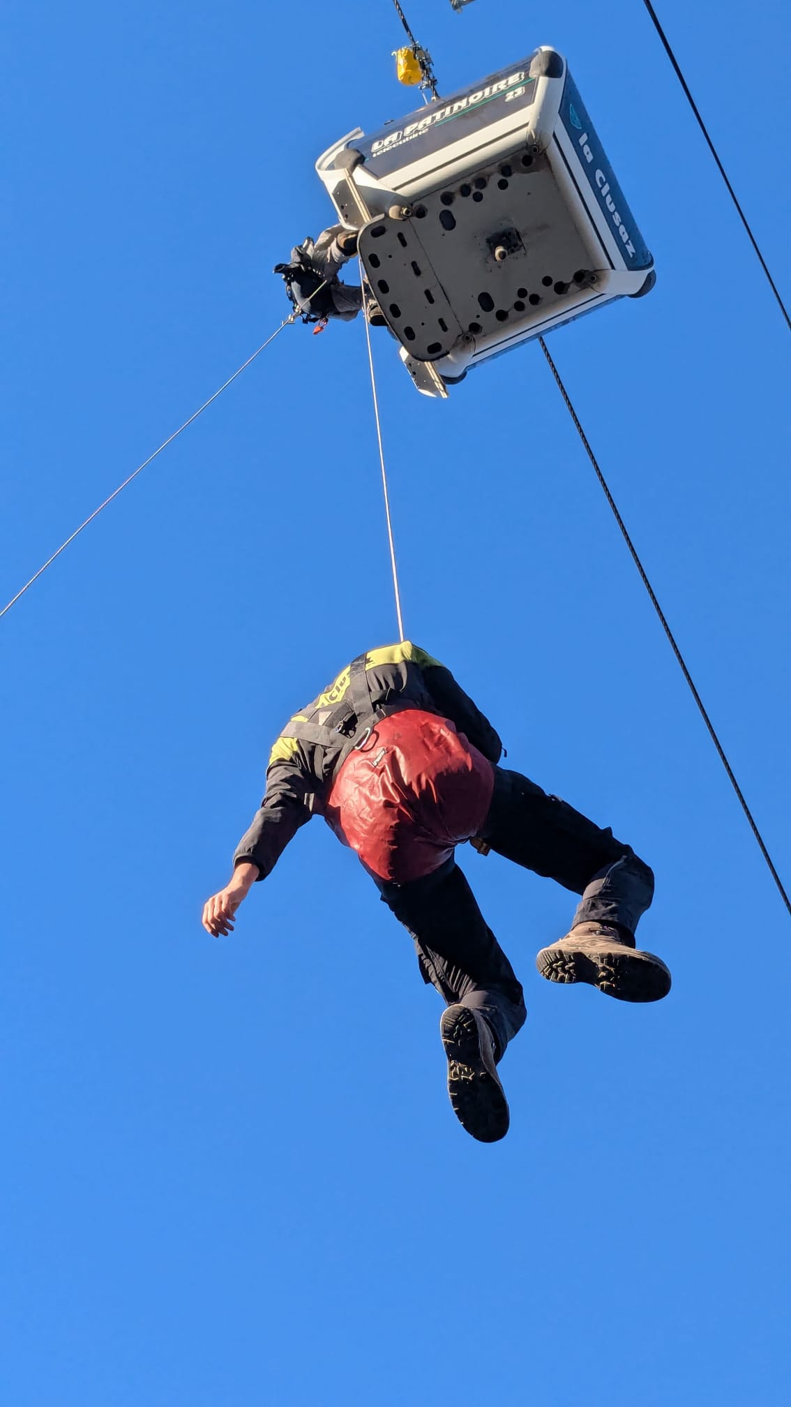 Cette exercice permet aux membres des équipes de la SATELC ( Groupement des remontées mécaniques) d'optimiser les procédures et de s'entrainer à l'évacuation de clients lors d'une défaillance.